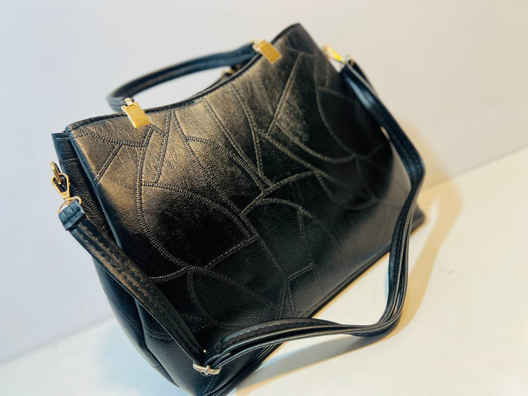 کیف بزرگ زنانه بسیار شیک و باکیفیت ،چرم شسته درجه یک،تک رنگ مشکی ،طرح های مختلف: ابعاد کار:۳۳*۲۸
