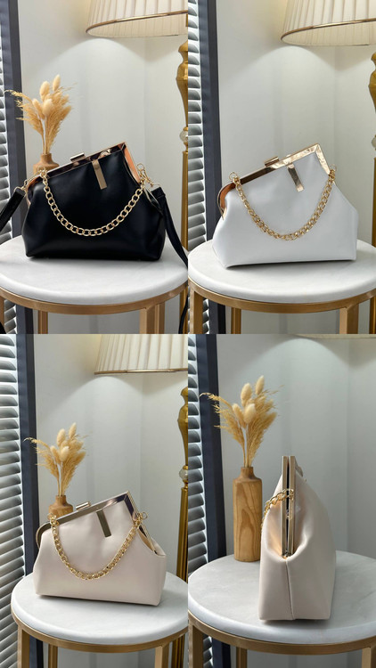 کیف بزرگ زنانه ،بسیار شیک و باکلاس ،مناسب مجلس و مهمانی،کیفیت عالی و درجه یک،چرم شسته ،دارای دو بند چرمی و زنجیری: ابعاد کار:۱۳*۲۲