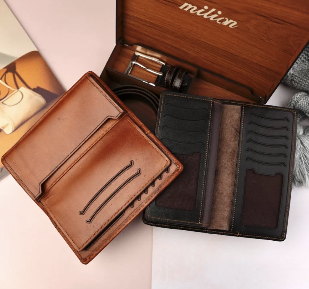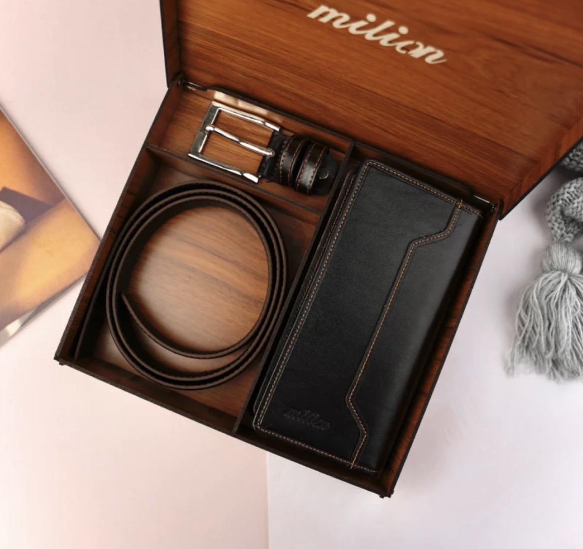 دستهبندی: کیف پول مردانهست دو تیکه چرم مردانه ،کیف پول و کمربند،بسیار شیک،جعبه چوبی،مناسب هدیه: ابعاد:۲۱*۱۰