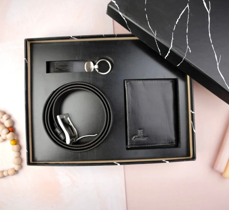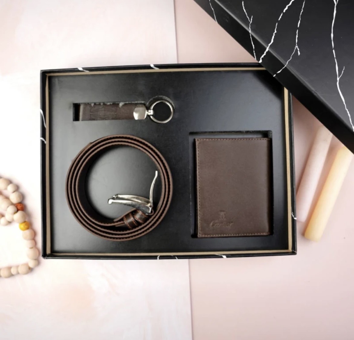 ست سه تیکه چرم مردانه،بسیار با کیفیت ،دارای کمربند ،کیف پول جیبی ،جا کلیدی،جعبه چوبی،مناسب هدیه